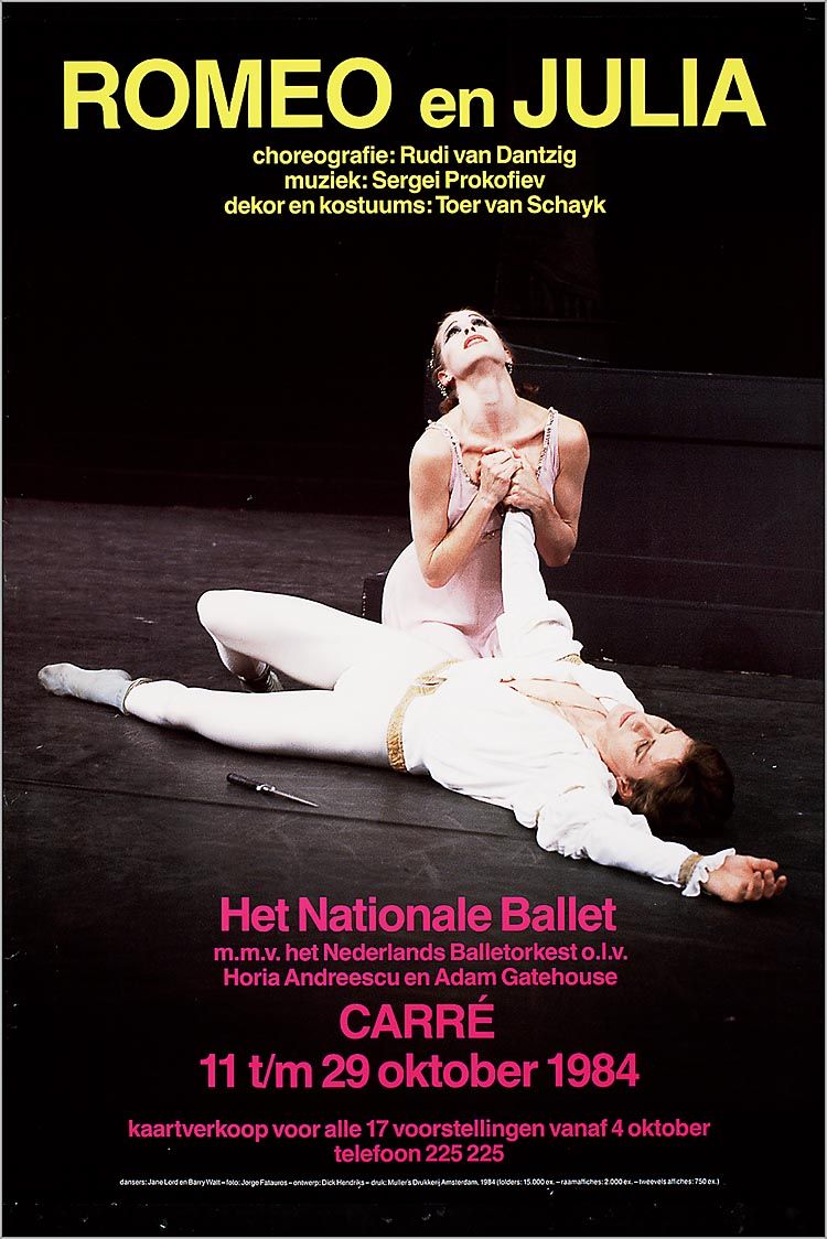 1967: De première van een avondvullende Romeo en Julia, een choreografie van Rudi van Dantzig, vormgeving door Toer van Schayk. Het stuk is echt een mijlpaal van het Nederlandse ballet geworden.